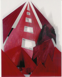 Η Μαρίνα Μαραβελάκη (στο κάτω επίπεδο της Αίθουσας) παρουσιάζει έργα-κατασκευές μεγάλων διαστάσεων, μικτής τεχνικής, με βάση το επεξεργασμένο, επιζωγραφισμένο ξύλο και τον πολυεστέρα. Βασικός θεματογραφικός άξονας της νέας αυτής ατομικής της έκθεσης, η Πόλη και τα Τοπία Πόλεων. Με εξπρεσιονιστική γραφή-προσέγγιση του εκάστοτε θέματός της, η Μαραβελάκη αποδομεί και αναδιαμορφώνει τα σύγχρονα τοπία πόλεων με βάση δυναμικούς άξονες και αιχμηρές απολήξεις, που βρίσκουν την κορύφωσή τους μέσα από οξυγώνιες συνθέσεις.