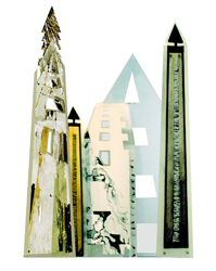 «.Ένας νωχελικός περίπατος εικόνων, αστικών εμπειριών που διαμορφώνουν ένα παιχνίδι εναλλαγής εποχών, ημερών και μηνών μέσα από τη χρήση γεωμετρικών αλλά και οργανικών αρχιτεκτονικών στοιχείων. Ενδείξεις ζωής με αντικείμενα που τονίζουν τη διαφορετική λειτουργία του κάθε κτιρίου, σε διαφορετικές φάσεις του χρόνου. Τάση για ανύψωση και καθήλωση. Αντιπαραθέσεις υλικών και συμβόλων. Χαρακτήρας ονειρικός και οργανωτικός συγχρόνως. Μια αναζήτηση στα μονοπάτια του αστικού χώρου που παραπέμπει σε ένα μυστικιστικό χαρακτήρα του κτιρίου - της πόλης. Ατμόσφαιρα δυναμική που απορρέει από την οξυκόρυφη αναπαράσταση των κτιρίων με το μνημειακό χαρακτήρα και την αυστηρή σχεδιαστική τους απόδοση, αλλά και τη λυρική, ατμοσφαιρική συνάμα προσέγγισή τους που πηγάζει από τη θερμή χρωματική παλέτα και τις διαφάνειες των υλικών. Μια ιστορία χωρίς τέλος που χαρακτηρίζεται από πειραματισμό, οπτικές οφθαλμαπάτες, διαδοχές αρχιτεκτονικών ρυθμών, αλλά και μουσικότητα. Η φιλοσοφία της αλλαγής, που αντικατοπτρίζεται στα κτίρια, υπονοεί το παρελθόν που μεταβάλλεται στο παρόν και το μέλλον σαν ένας καθρέπτης της φύσης και της ζωής μας.