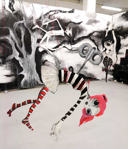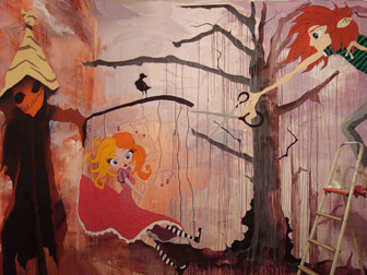 Την ίδια περίοδο στο κάτω επίπεδο της γκαλερί, παρουσιάζεται η έκθεση ζωγραφικής και κατασκευών της Σοφίας Παρασκευοπούλου, με τίτλο: “ Ήμασταν κάποτε παιδιά ”. Με έντονες αναφορές στην αισθητική των Κόμικς, αλλά και του γκράφιτι, η καλλιτέχνης δημιουργεί τις δικές της ποπ – εικαστικές φιγούρες, τις οποίες εντάσσει σε έναν κόσμο δραματικό, όπου κυριαρχεί το άσπρο-μαύρο, με λίγες εξαιρέσεις φωτεινότητας και χρωμάτων έντονων όπως το κόκκινο της καρμίνας ή τα γυαλιστερά γκλίτερ πράσινα και μωβ. |