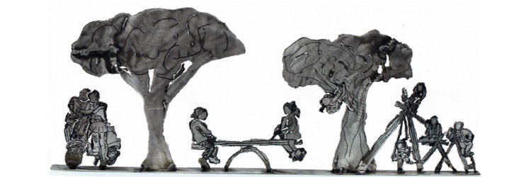 Γλυπτά από ανοξείδωτο χάλυβα, άνθρωποι από ατσάλι καθισμένοι χαλαρά ή παρέες στο καφενείο , παιδιά σε παιδική χαρά , δέντρα που στη σκιά τους σκυλάκια βγαίνουν βόλτα και μαζί άνθρωποι που αφήνουν την ανθρώπινη πνοή, το αποτύπωμα τους στο σκληρό αδιαπέραστο υλικό που χρησιμοποιεί η καλλιτέχνης για να τα αποδώσει γλυπτικά. Δεν γίνεται να μη μας φέρουν στο νου σπουδαίους καλλιτέχνες του Μοντερνισμού (όπως ο Πικάσσο) που με τη γλυπτική τους ανέδειξαν τις απλές καθημερινές σκηνές της ζωής με πρωταγωνιστή τον άνθρωπο ή τα ζώα.