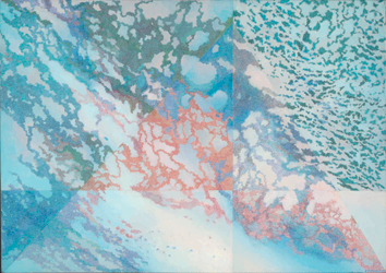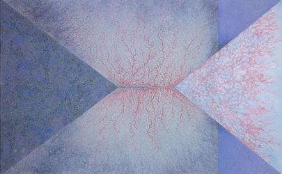 In her new series of works , entitled: “Moving in a dream.. ”, Evrydiki Kalimachou continues to thrive upon her abstract line of work, emphasizing the aesthetics, the poetry, the dream that derive from the process and the painting work itself.