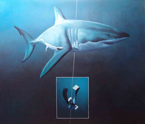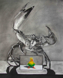 The works’ double pictures narrate and provoke intense impressions, in their unexpected crossing. They create spaces and suggest ambiguous situations, they depict a world “..in between”. Levitating between reality and fantasy in a metaphysical alienation, they balance between the paradox and the unfamiliar, combining poetry with clarity and accuracy of representation, mystery with symbolic references, which are hermetic and, at times, enigmatic.