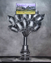 In his second solo exhibition in “Astrolavos-dexameni ” gallery, the artist is presenting works, in which the synthesis’ center is dominated by a rectangular frame, which opens as a window on to another dimension, thus revealing a second picture.