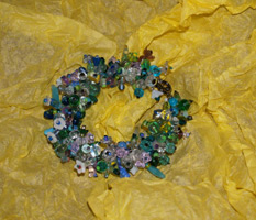 και τις ανθοδέσμες, από σύρμα, φως και χρωματιστά διάφανα