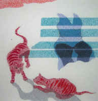 η ίδια βάφει, αφήνοντας την κυματοειδή, κινούμενη γραφή