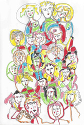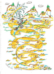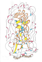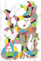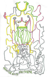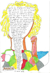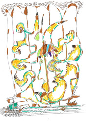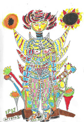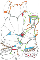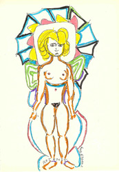 “ Η σειρά αυτή από φαντασιώσεις για το πως μπορούν, με μία σύγχρονη οπτική - με κάποιο χιούμορ και παρωδία, να παρουσιαστούν, οι θηλυκές θεές, σε θνητές, (γυναίκες) και τα πολλά μυθολογικά τέρατα, που βρίθουν στα πιο μεγάλα σε έκταση και αξία ελληνικά ποιήματα, την Ιλιάδα και την Οδύσσεια. Τα σχέδια αυτά, δεν αποτελούν πιστή απεικόνιση αλλά παράφραση, παραφθορά μοντερνιστική, όπως π.χ. το έργο με τίτλο: το “Αυτοκίνητο κορίτσι της Τροίας” , με χρονικές αναδρομές, εκσυγχρονισμούς και άλλα παιχνίδια με τα χρώματα και τα σχέδια και το τέχνασμα του αναχρονισμού – όπως π.χ. στην Αναγέννηση παρουσίαζαν τα πρόσωπα του Ομήρου με κουστούμια της εποχής της. Σε εμάς κάτι τέτοιο επιχείρησε και ο Νίκος Εγγονόπουλος, όταν δεν παρουσίαζε τα μυθολογικά τα πρόσωπα γυμνά. Η παράδοση αντίθετα με το πως σκέπτονται οι νεοκλασικιστές, δίνουν την ευκαιρία για πολλές εκδοχές, ποιητικές πάντοτε, με αγάπη και σεβασμό στα αρχαία αυτά αριστουργηματικά ποιήματα που σχεδιάστηκαν, σύμφωνα με την ανάγνωσή μου. Αλφαβητικά, με το σύστημα της Ακροφωνίας. Δηλαδή λέξεις που αρχίζουν με τον τίτλο της Ραψωδίας Α, Β, Γ, Δ, καθορίζουν τα κύρια θέματα της εκάστοτε Ραψωδίας, όπως τις έβλεπε ο Δίας κοιτάζοντας μέσα απ’ τα σύννεφα τις μάχες της Ιλιάδας και τις περιπέτειες του Οδυσσέα.” |