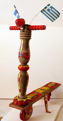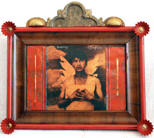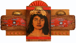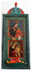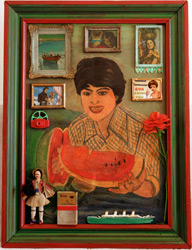 Είναι ένας κόσμος, με μία ιδιότυπη αισθητική που συνδυάζει ένα κολάζ αναγνωρίσιμων στοιχείων από την Ελληνική παράδοση των τελευταίων δεκαετιών. Παλιά αντικείμενα από ξύλο - εικονοστάσια, κορνίζες, κομμάτια από παλιά έπιπλα και παιχνίδια, έως το κασελάκι του λούστρου.. – είναι η πρώτη ύλη, στην οποία η καλλιτέχνης έχει επέμβει είτε ζωγραφικά είτε με επικόλληση άλλων ready-made υλικών, όπως παλιές κονσέρβες, χάρτινο ή πλαστικό διάκοσμο, δίνοντας τους μια νέα διάσταση και κυρίως μια νέα αισθητική. Μέσα απ’ τις εικόνες της Παναγίας ή των Αγίων που αποκτούν μια σύγχρονη, ανθρώπινη υπόσταση, τα συμβολικά στοιχεία, πλαστικά φρούτα εν είδη νεκρής φύσης, το αβγό, το ρολόι, τη μάσκα, την ελληνική σημαία και τον συνδυασμό τους με κομμάτια από παλιές συσκευασίες της πορτοκαλάδας Έψα, του καφέ Λουμίδη, των ελιών Καλαμάτα,.. κλπ, δημιουργούνται νέα αντικείμενα-συνθέσεις, που παραπέμπουν σε ένα ύφος Σουρεαλιστικής σύζευξης διαφορετικών Πολιτισμικών στοιχείων και κυρίως διαφορετικών ενθυμημάτων, όλων, αγαπημένων εικόνων Μνήμης της καλλιτέχνιδας. Μέσα απ’ την καλλιτεχνική δημιουργία, ο σκοπός είναι όλα αυτά τα παλιά αντικείμενα, να αποκτήσουν μια νέα καλλιτεχνική ιδιότητα και άρα μια νέα Ζωή, σαν ένα Ποπ - Μπαρόκ συνονθύλευμα, ενός χαρούμενου ή μελαγχολικού, σίγουρα πάντως νοσταλγικού κόσμου, που γίνεται Εικόνα.