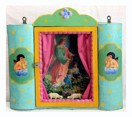 Στη νέα ατομική της έκθεση η Σταθοπούλου, παρουσιάζει το σύνολο μιας σειράς κατασκευών – assemblage, με απλά ευτελή υλικά και ξύλο, δημιουργώντας έναν κόσμο που μοιάζει να έχει ξεπηδήσει απ’ τις εικόνες των έργων της Φρίντα Κάλο και της λατινοαμερικάνικης κουλτούρας και Τέχνης.