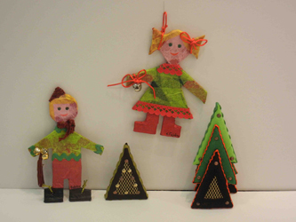 Τα χριστουγεννιάτικα στολίδια των: Λίας Αλαβάνου, Ελευθερίας Γαλάτη, Κατερίνας Μαμάη, Λιάνας Παπαλέξη και Ξανθίππης Τσαλίμη.
